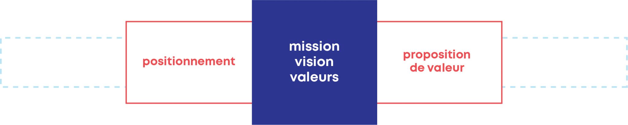 La mission se trouve dans le présent de l’entreprise et se positionne sur le Comment. La vision, dont on parle plus bas, regarde vers l’avenir.